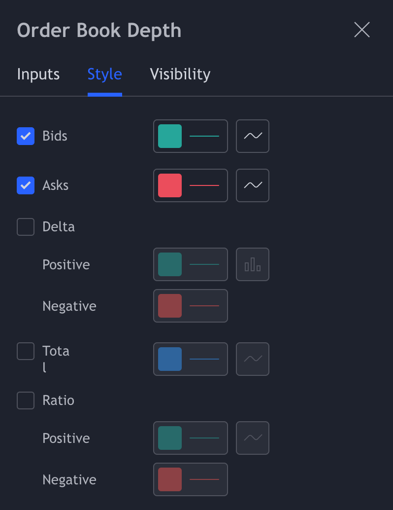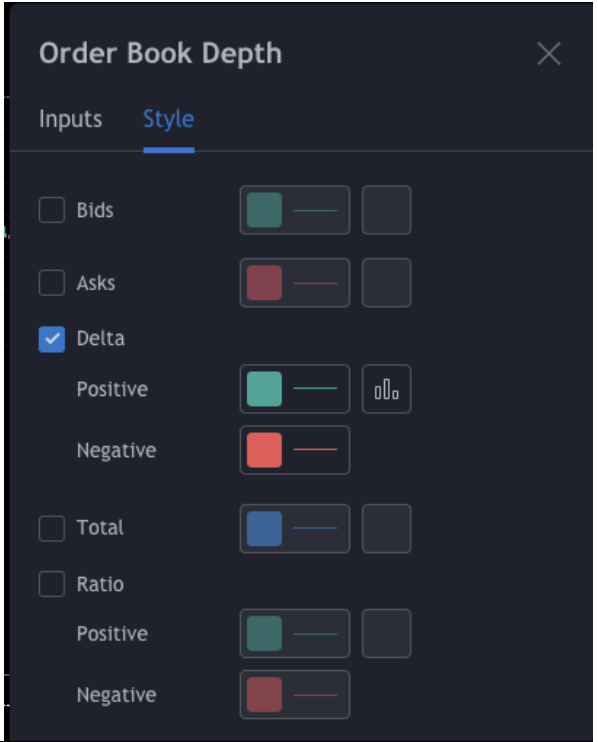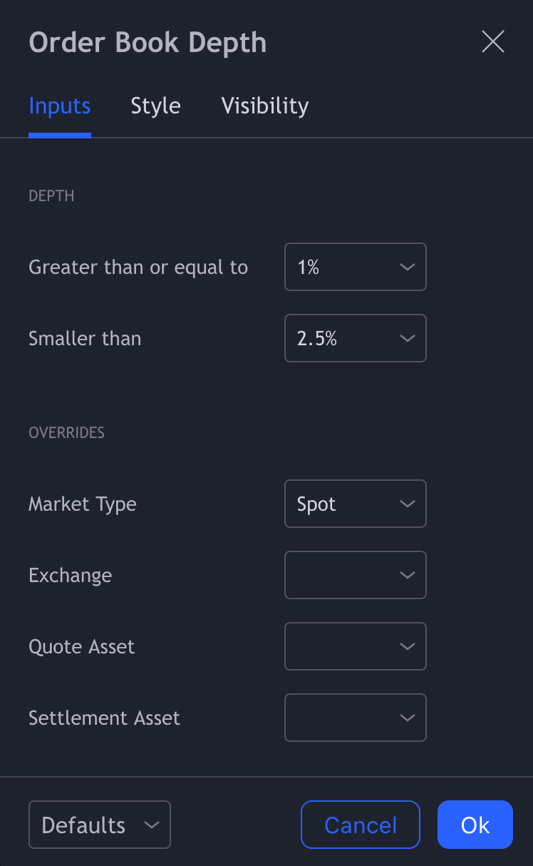 Overrides: If you choose 'spot,' the OBD data will only appear when you select a specific spot market. Different settings for different markets can be beneficial due to differences between Spot/Perpetuals/Futures markets.