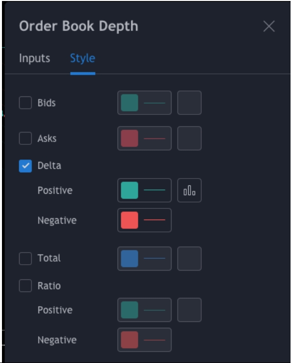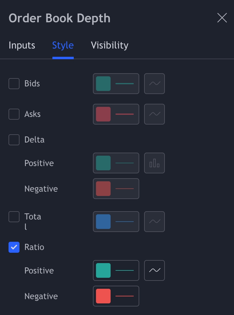 The Order Book Depth Indicator on TRDR provides a real-time visualization of market liquidity imbalance, showing the distribution of buy (bid) and sell (ask) orders at different price levels. It helps traders assess market depth, supply and demand imbalances, and potential support/resistance zones.