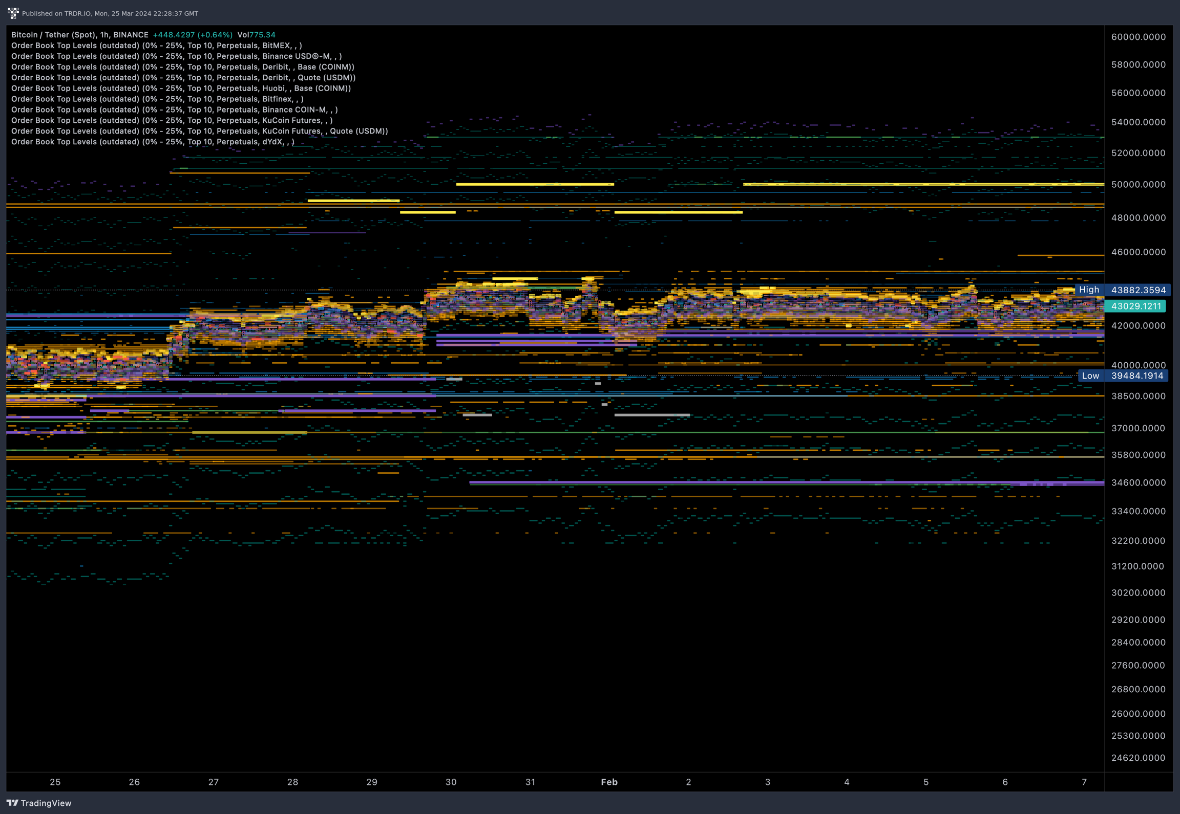 To maximize the utility of the Top Levels, it's best to align the indicator with the Order Book Overlay. Top Levels can be used in the following ways: