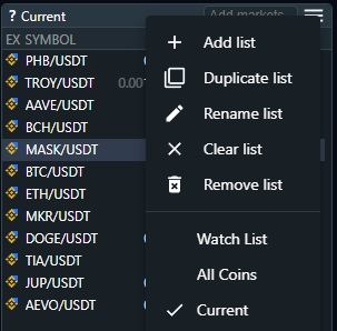 The Watch List widget is a useful tool to monitor and organize various cryptocurrencies, allowing you to create a personalized overview of markets that matter to you.